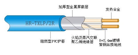 發(fā)熱電纜的發(fā)熱元件是由銅、鎳合金制成的電阻絲,在一根發(fā)熱電纜內(nèi),任意同等長度距離內(nèi)的阻值是相等的。發(fā)熱電纜通過密封防水的接線盒與冷線相連,當(dāng)冷線被加上電壓后,電流在發(fā)熱電纜中通過,由于受到電阻的阻礙,電能轉(zhuǎn)化為熱能并以輻射的形式散發(fā)出來,其熱效率高達(dá)97%以上