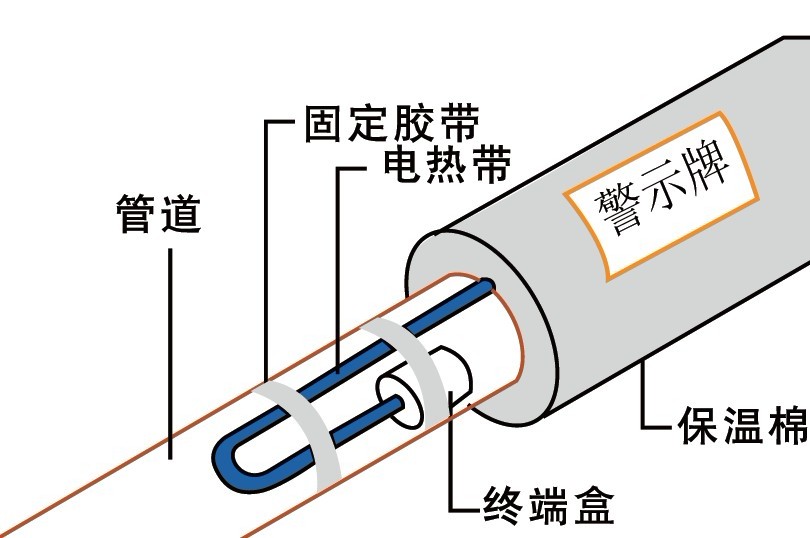 在以上電伴熱系統安裝調試完畢后,需做外保溫層,請選擇阻燃防火型的外保溫層,在保溫層外加警示標簽注明“內有電熱帶”更需注明所有配件的位置.,以便于今后電熱帶接線方式的檢查和維護。