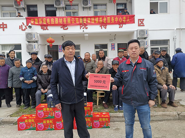 在敬老院的捐贈儀式現場,梁園鎮敬老院負責人對安徽環瑞電熱器材有限公司工作人員的善德善行表示了敬意和感謝,并接受了安徽環瑞公司捐贈的物資。