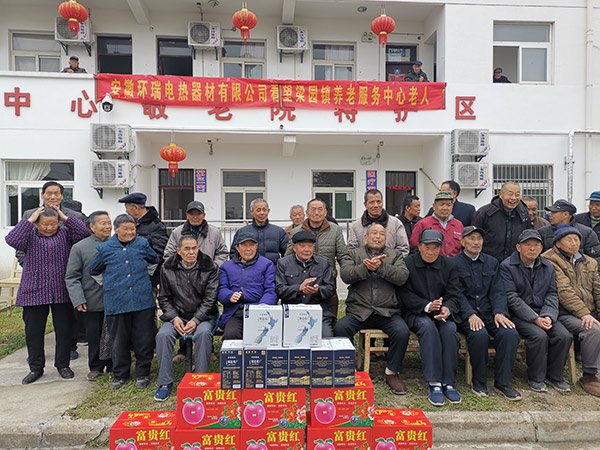 安徽環瑞電熱器材有限公司董事長計成志將“尊老、敬老、愛老”的精神帶到了梁園鎮敬老院,看望慰問生活在敬老院中的老人,并為老人們送上慰問品。